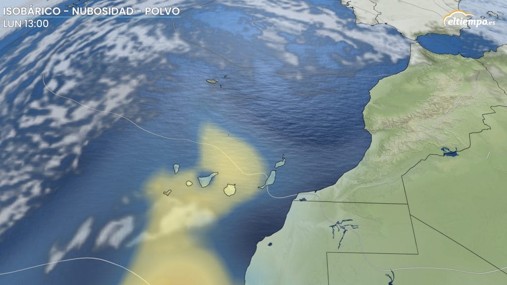 La presencia del anticiclón y una dorsal en altura favorecerán la estabilidad en la mayor parte de España. Esta situación propiciará que en las islas Canarias la semana comience con polvo en suspensión, un episodio que ha provocado la activación de avisos meteorológicos.