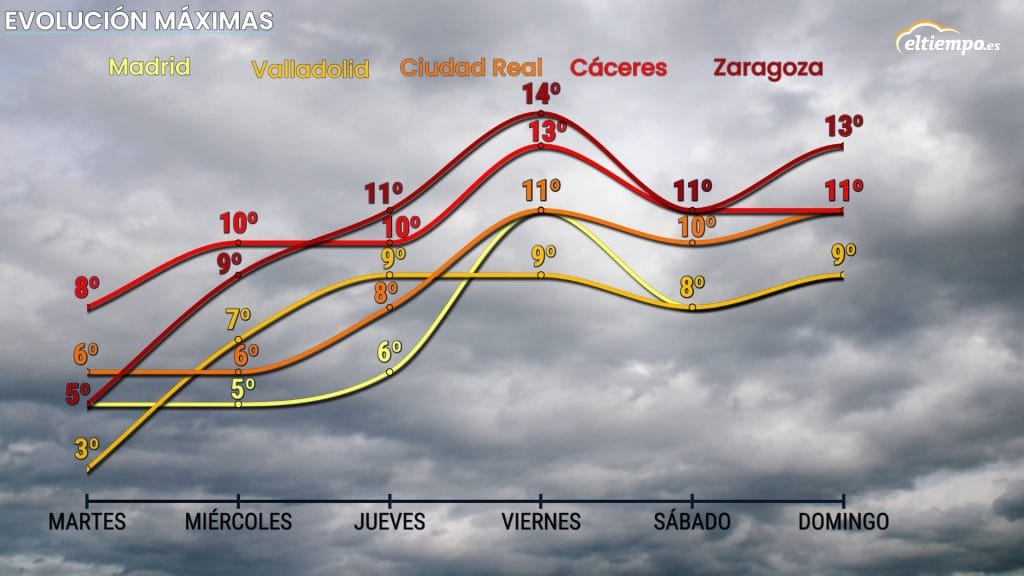 Pero el invierno más crudo tendrá fecha de caducidad. A partir del miércoles, se impondrá una dorsal anticiclónica, dando paso a un tiempo más estable y a un ascenso progresivo de las temperaturas.