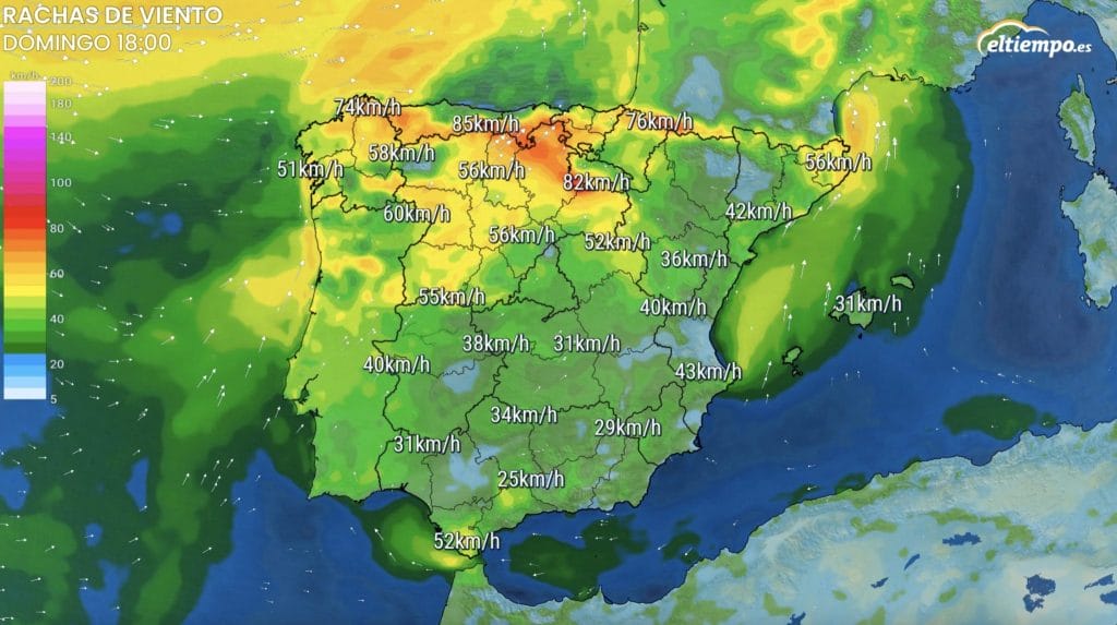 El viento, que ya será intenso en algunas zonas del Mediterráneo entre el viernes y el sábado, tenderá a arreciar el domingo en zonas del noroeste con rachas intensas entre Galicia, la cordillera Cantábrica y otras zonas del norte.