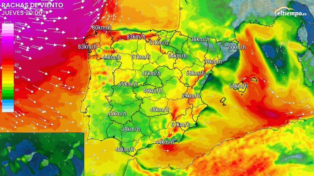 En el sudeste peninsular tambien se esperan rachas de viento de mas de 70 km/h así como en Menorca y en la desembocadura del Ebro.