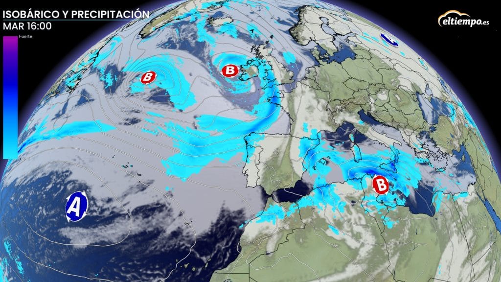 La semana estará marcada por el paso de sucesivos frentes atlánticos, que dejarán fuertes lluvias a su paso.