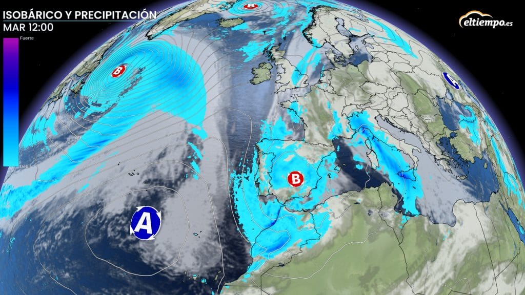 Esta borrasca fría, que se situará en el sudeste peninsular, provocará inestabilidad en forma de intensas lluvias, afectando a buena parte de España durante la jornada del martes.