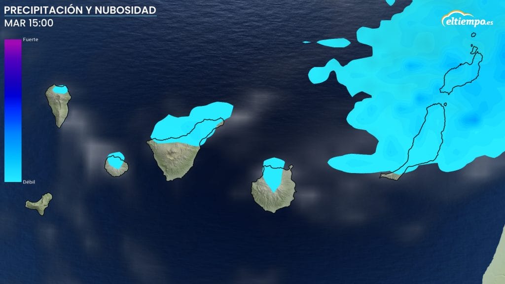 A lo largo del día, especialmente durante la tarde, se esperan precipitaciones muy intensas en regiones de Lanzarote y Fuerteventura. En dichas islas se han activado los avisos meteorológicos por fuertes lluvias, que podrán superar los 15 mm acumulados en 1 hora.