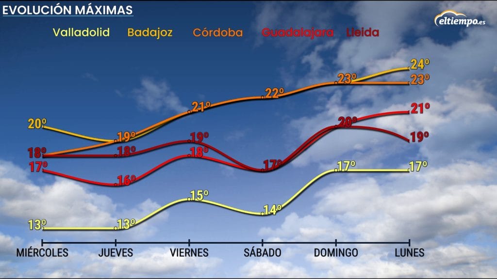 Las temperaturas han empezado a subir y, según la zona, lo harán al menos hasta el domingo. Las máximas se mantendrán en valores cercanos a lo habitual para la época. En puntos del interior peninsular, aún pueden ser ligeramente más frías de lo habitual.