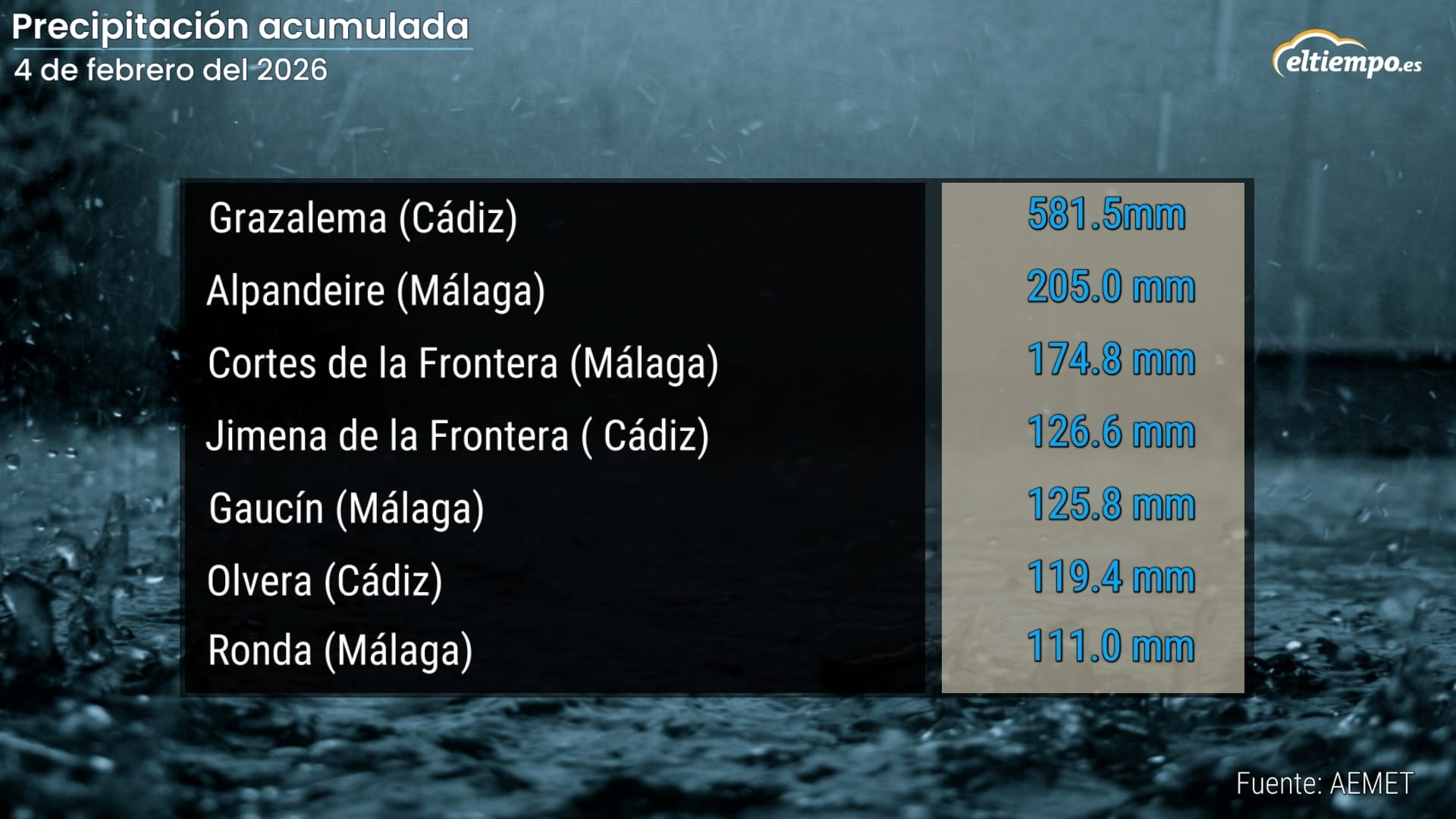 Además, en los últimos días han llegado masas de aire especialmente húmedas —reforzadas en algunos momentos por ríos atmosféricos— que han alimentado las borrascas, disparando los acumulados en esta zona del sur peninsular.