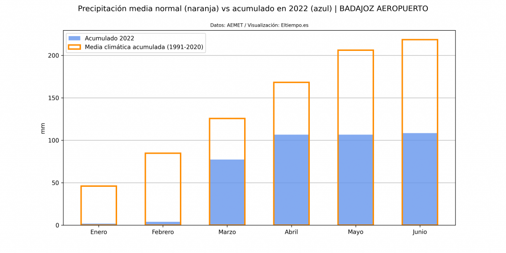 Como se puede ver en la siguiente imagen, el acumulado registrado en 2022 es muy inferior a cómo debería estar.