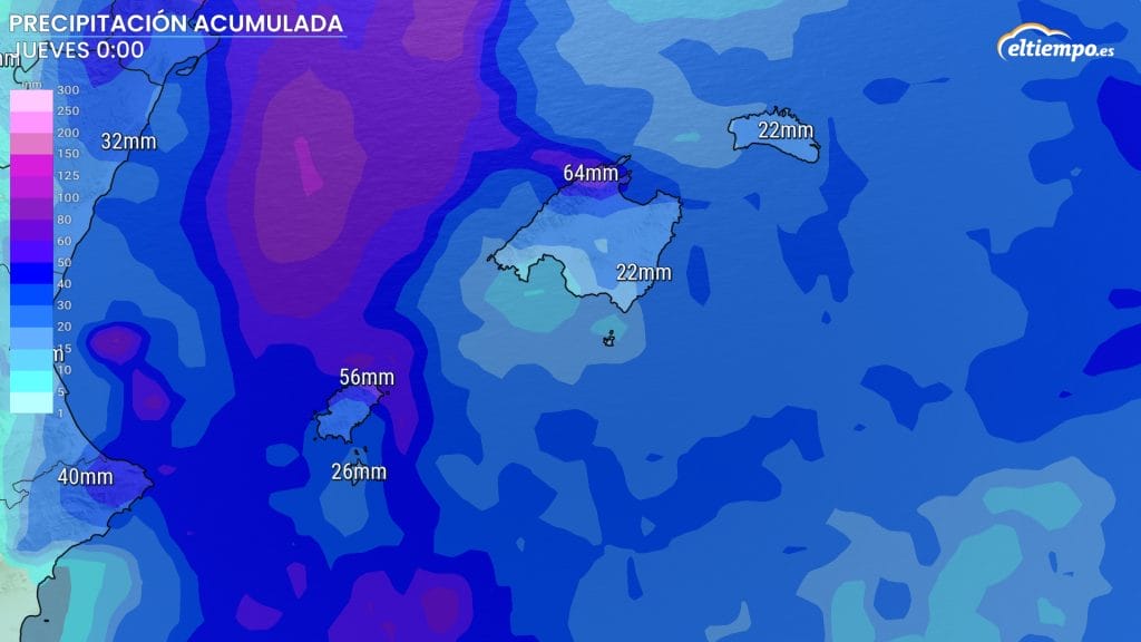 Será ya durante la madrugada del miércoles cuando las lluvias tiendan a ir disipándose en las islas Baleares, con algún chubasco puntual todavía.