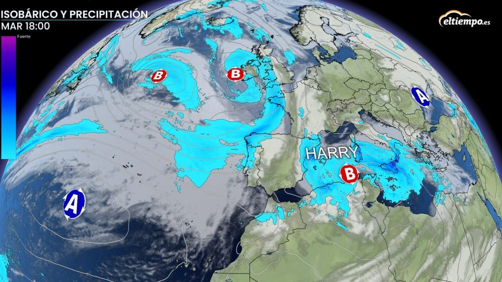 Durante la jornada del lunes las fuertes lluvias hicieron acto de presencia en el Mediterráneo. Afectando principalmente a Cataluña y las islas Baleares. Además, Harry dejó nevadas en diferentes puntos de la península.