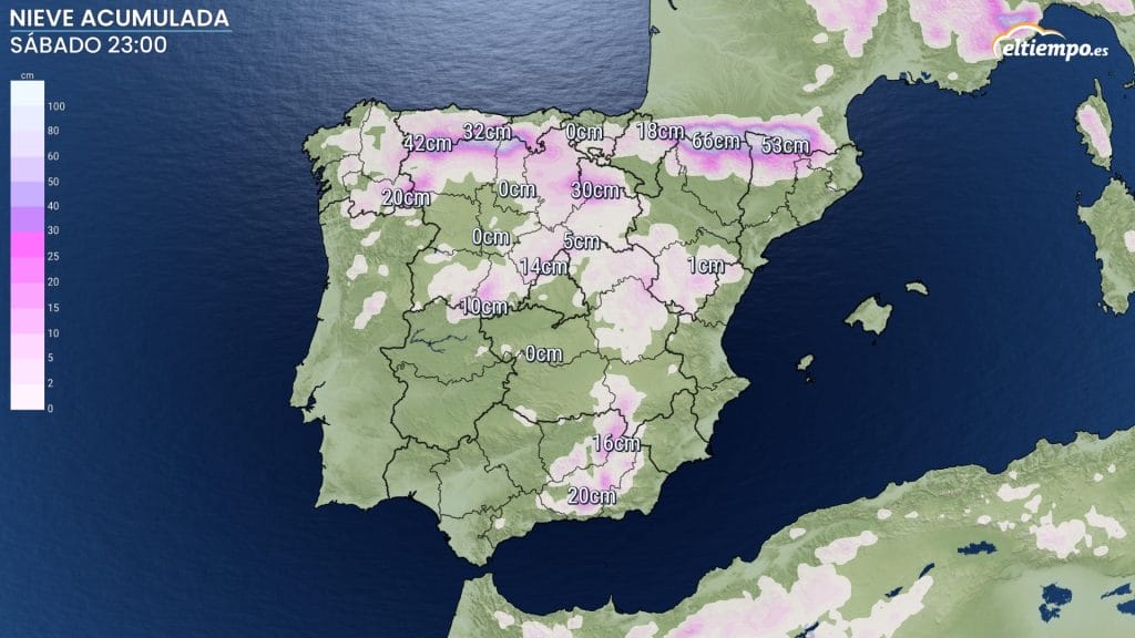 Durante el fin de semana el ambiente será invernal, con heladas en zonas de la mitad norte y en los principales sistemas montañosos. Se esperan nevadas en la cordillera Cantábrica, Pirineos y otros sistemas, con cotas entre 1000 y 1200 metros el viernes, y descendiendo a unos 800 metros el sábado.