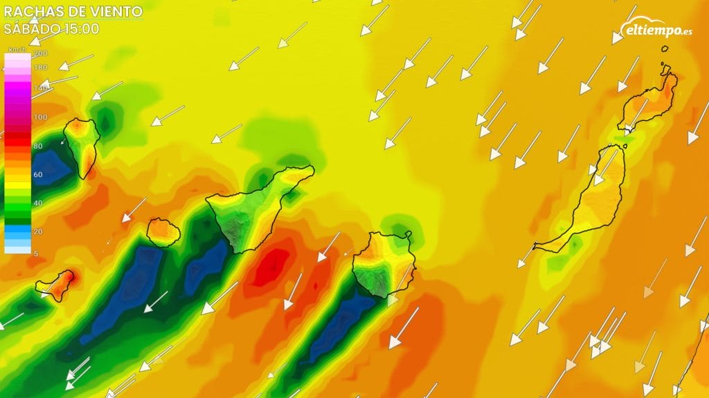 En las islas Canarias el viento también hará saltar los avisos amarillos por rachas superiores a los 70 km/h en La Palma, El Hierro, La Gomera, Tenerife y el sur de Gran Canaria.