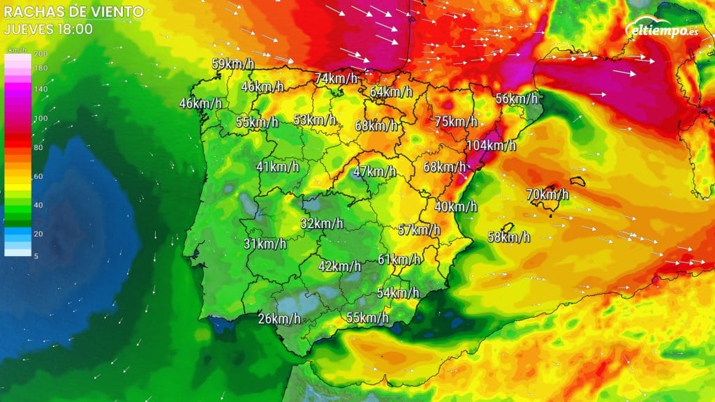 Durante la jornada del jueves el viento continuará soplando con intensidad en buena parte de España. Las rachas más intensas se esperan en el este de la Península Ibérica y las islas Baleares.
