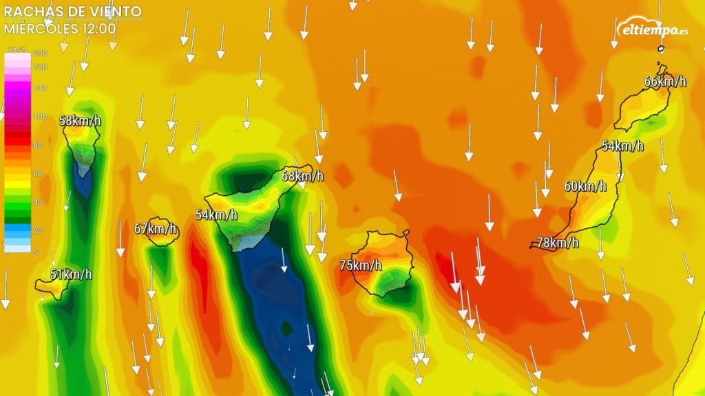 El viento seguirá soplando con mucha intensidad durante la mañana, dejando rachas superiores a los 80 km/h en buena parte del archipiélago. Una vez más, se mantendrán activos avisos de nivel amarillo durante las primeras horas del día. Estos avisos serán más persistentes en Gran Canaria, Tenerife y La Gomera, donde durarán por lo menos hasta medio día.