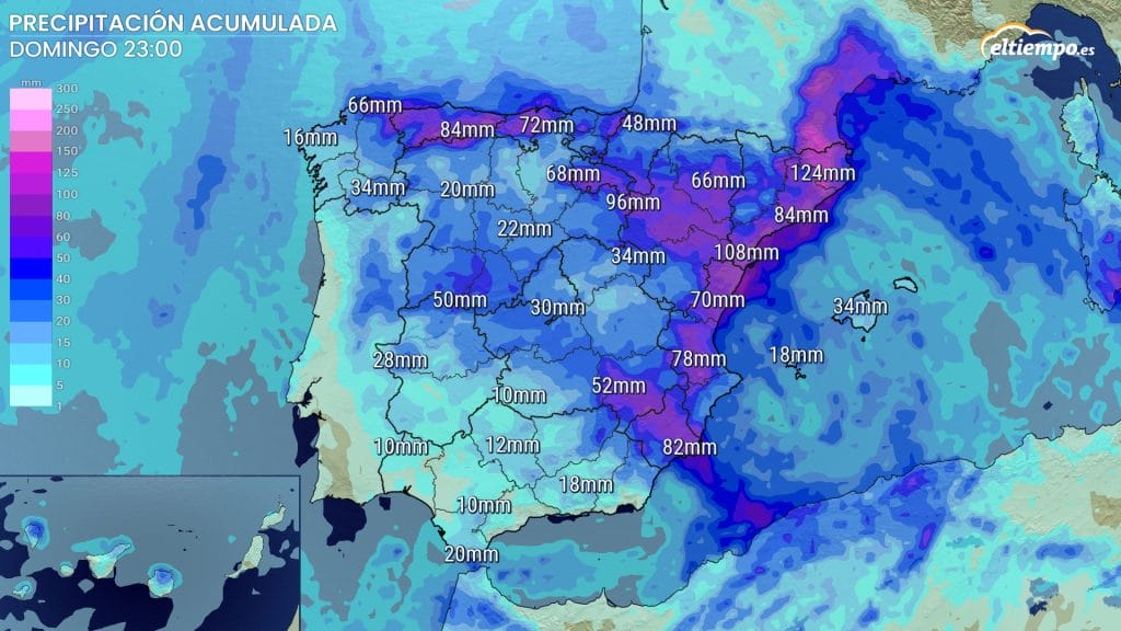 La Comunidad Valenciana será también una de las comunidades más afectadas; en localidades como Castellón, los acumulados en lo que queda de semana podrán superar los 100 mm.