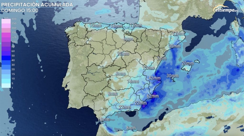A partir del miércoles, las precipitaciones ya van a ser más frecuentes, llegando a Cataluña, la Comunidad Valenciana, Baleares, Murcia, Melilla y el este de Andalucía y Castilla-La Mancha, aunque también llegarán a otras zonas del este peninsular y puntualmente al norte.
