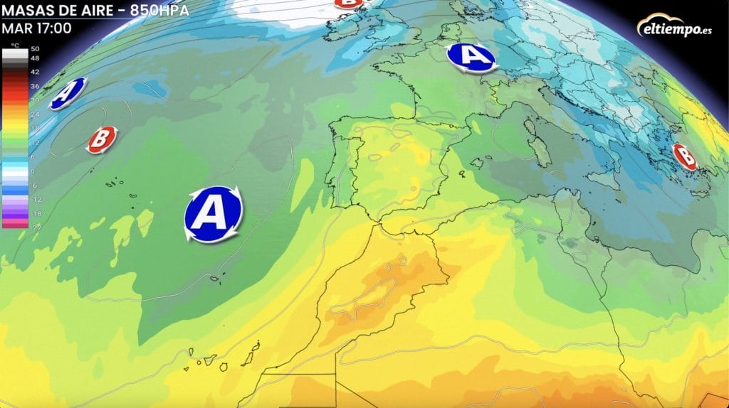 La dorsal anticiclónica que nos acompaña ayudará a mantener el flujo de aire desde el norte de África hacia la península, que, sumado a las horas de sol, mantendrá las temperaturas elevadas, sobre todo en la mitad sur de España.