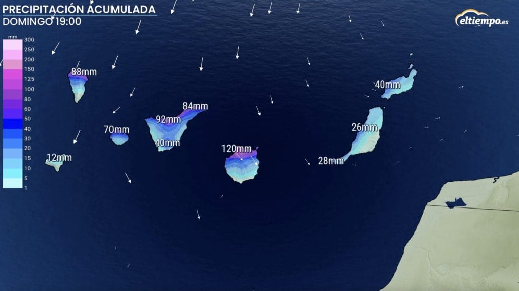 La borrasca en cuestión dejará precipitaciones copiosas en algunas zonas del norte de las islas Canarias entre el viernes y el fin de semana. También se esperan precipitaciones esos días en el sur de Andalucía, Ceuta y Melilla, con tendencia a extenderse a otras zonas del sudeste peninsular.