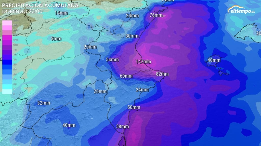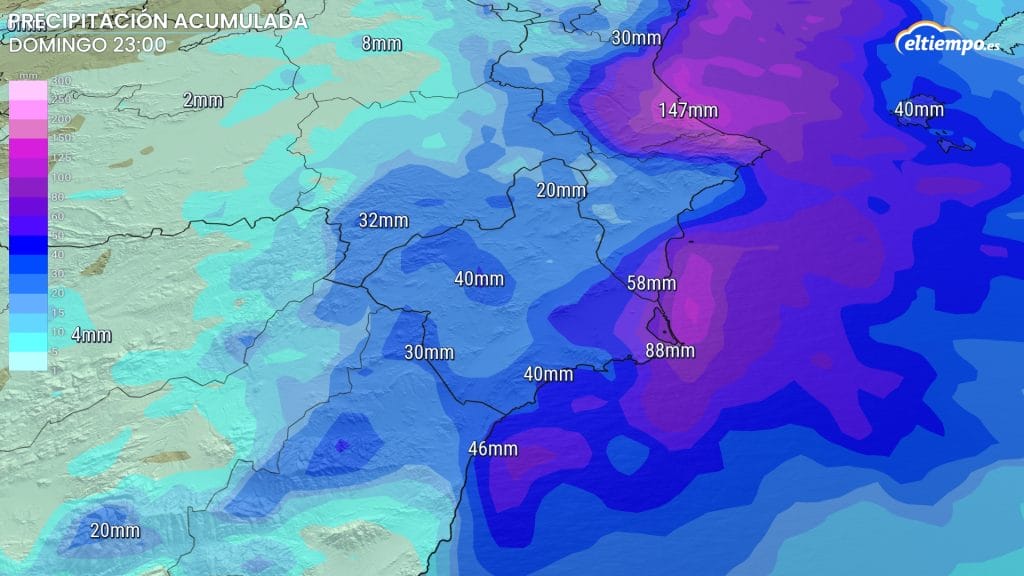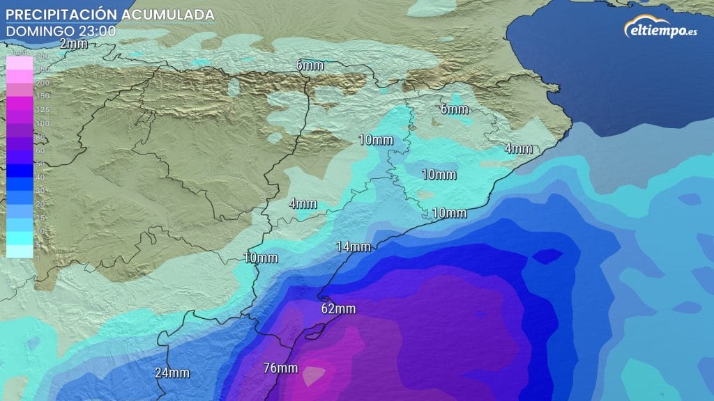 Según la previsión, en el sur de Valencia y norte de Alicante, los acumulados podrían superar los 150-250 mm hasta el domingo.