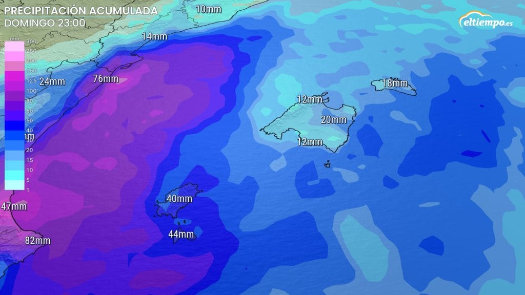 El jueves las precipitaciones pueden ser intensas y persistentes en Ibiza y Formentera y dejar acumulados de más de 100 mm en 12 horas, incluso podrían acumularse en 4 horas y tienen avisos naranjas activos. También pueden producirse chubascos en Mallorca y Menorca, pero a priori serían más aisladas.