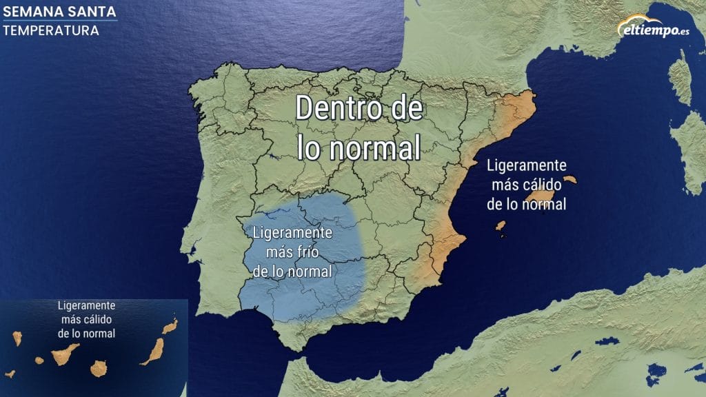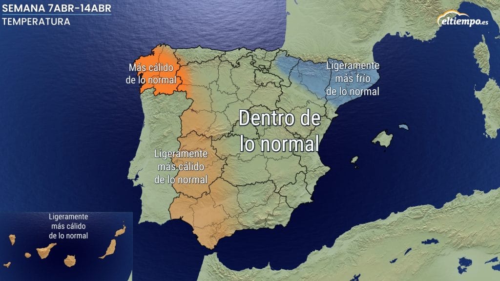 No obstante, algunas zonas del litoral mediterráneo, como la Comunidad Valenciana, Murcia, Cataluña y Baleares, así como Canarias, podrían registrar temperaturas ligeramente más cálidas de lo habitual.