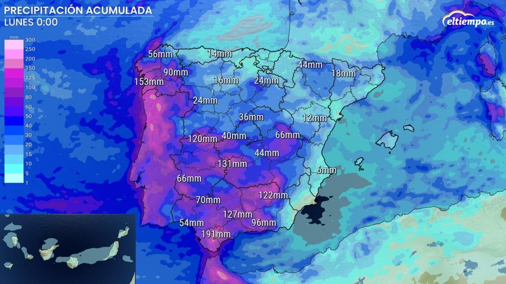 Estas lluvias podrán ser muy fuertes durante la mañana en regiones de Galicia como Vigo, del norte de Extremadura y de Andalucía como Sevilla. En la tarde podrán venir acompañadas por tormentas eléctricas en zonas del suroeste peninsular y ser especialmente intensas en Aragón. La nieve podrá volver a los principales sistemas montañosos del país.