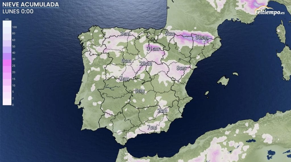 Por lo demás, las cordilleras que más nieve van a acumular estos próximos cuatro días son los Pirineos, el Sistema Ibérico en torno a La Rioja y el Sistema Central.