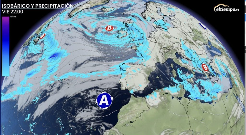 Aunque las altas presiones van a ir tomando posición sobre la península ibérica este fin de semana, también vamos a notar el paso de frentes asociados a una profunda borrasca que se mueve bastante más al norte de nuestra geografía.