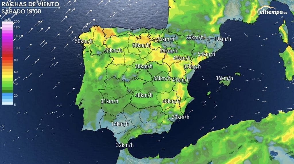 También vamos a notar cómo los fuertes vientos que estas últimas horas han azotado zonas del norte y este con rachas de más de 80 kilómetros por hora van amainando. Aun así, el viento y el fuerte oleaje aún estarán presentes en algunas zonas del noroeste a lo largo del fin de semana.