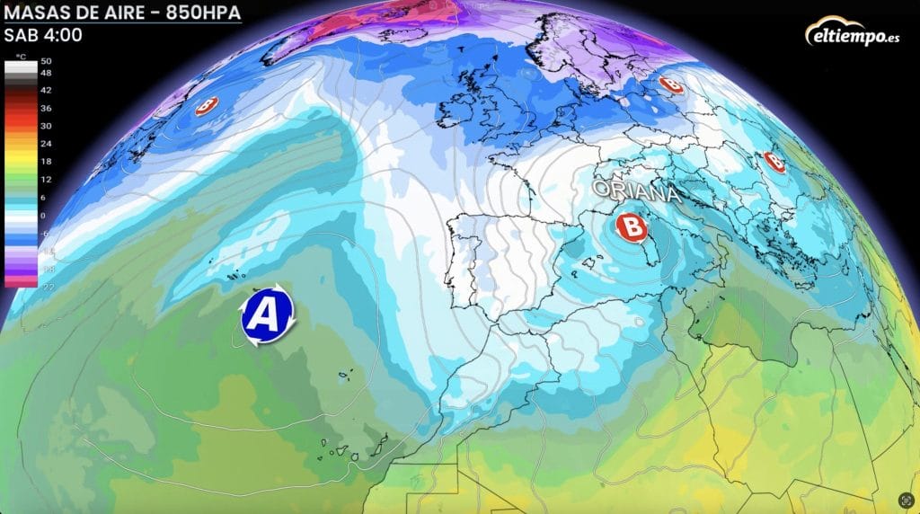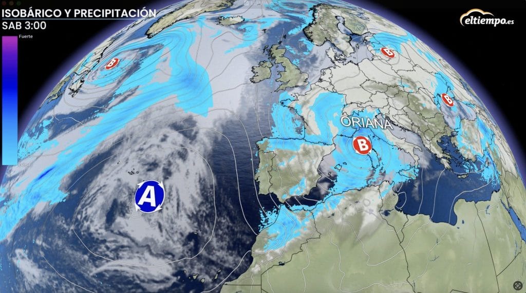 Ese mismo viernes se formará en las inmediaciones del golfo de León la borrasca Oriana, que generará intensos vientos, una situación marítima complicada y precipitaciones en algunas zonas, sobre todo del norte, nordeste y Baleares.
