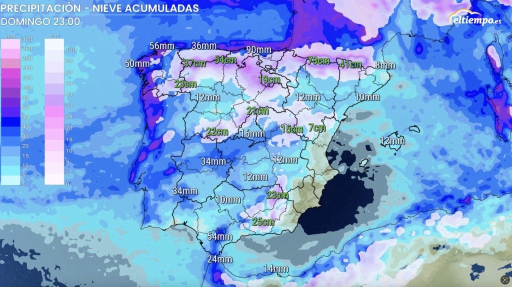 Lluvia y nieve abundante entre viernes y sábado