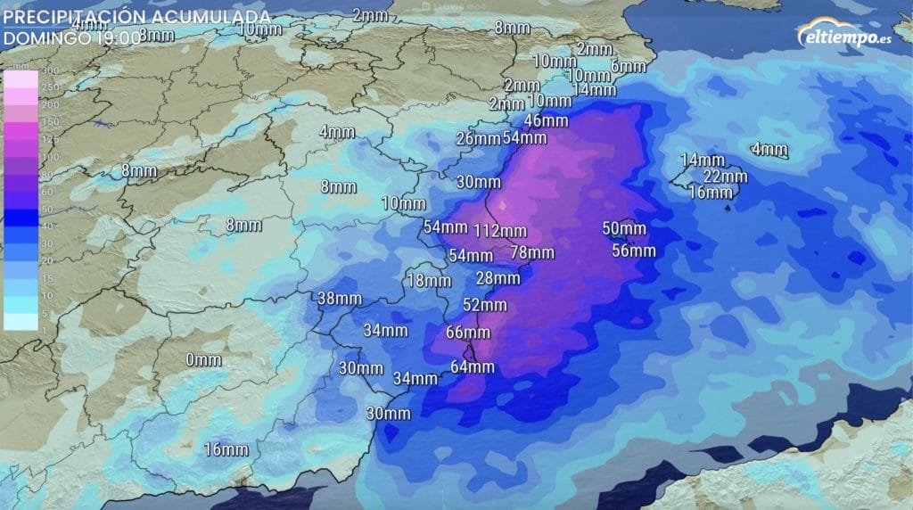 El norte de la provincia de Alicante y el sur de la de Valencia son las zonas que podrían sufrir los efectos más severos, mientras que en Baleares, especialmente en Ibiza y Formentera, se esperan lluvias persistentes y tormentas localmente fuertes.