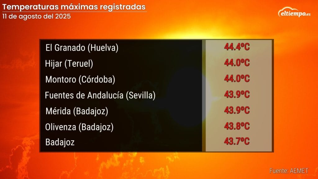 Avisos rojos por calor extremo este martes en varias provincias, con picos térmicos que podrían alcanzar los 44 °C.