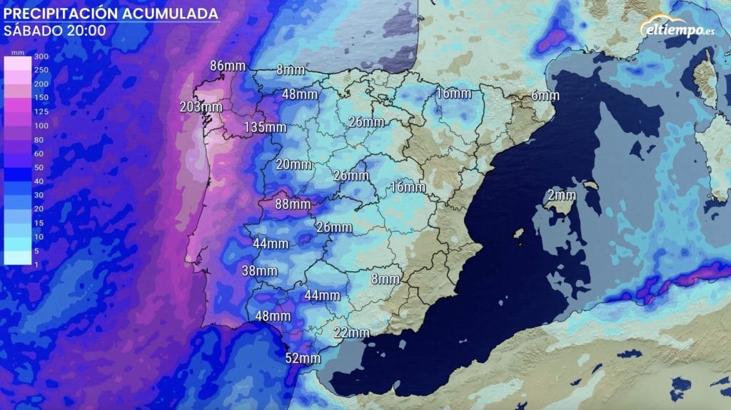 Parece que el primero de los frentes más activos llega ya el martes por la noche a Galicia, aunque será en tre el miércoles y parte del jueves cuando genere precipitaciones que van a ir avanzando de oeste a este. Las acumulaciones más importante las van a registrar en el oeste de Galicia aunque se extenderán a zonas del interior peninsular y a las islas Canarias. Tenemos otro frente que llega con bastante actividad el viernes y ese abrirá la puerta de las precipitaciones para el fin de semana. Lo iremos confirmando a medida que se vayan actualizando los pronósticos de los modelos, aunque parece que la lluvia del fin de semana podría llegar asociada a una borrasca atlantica por el suroeste de la península afectando a la mitad sur peninsular, Ceuta y Canarias.