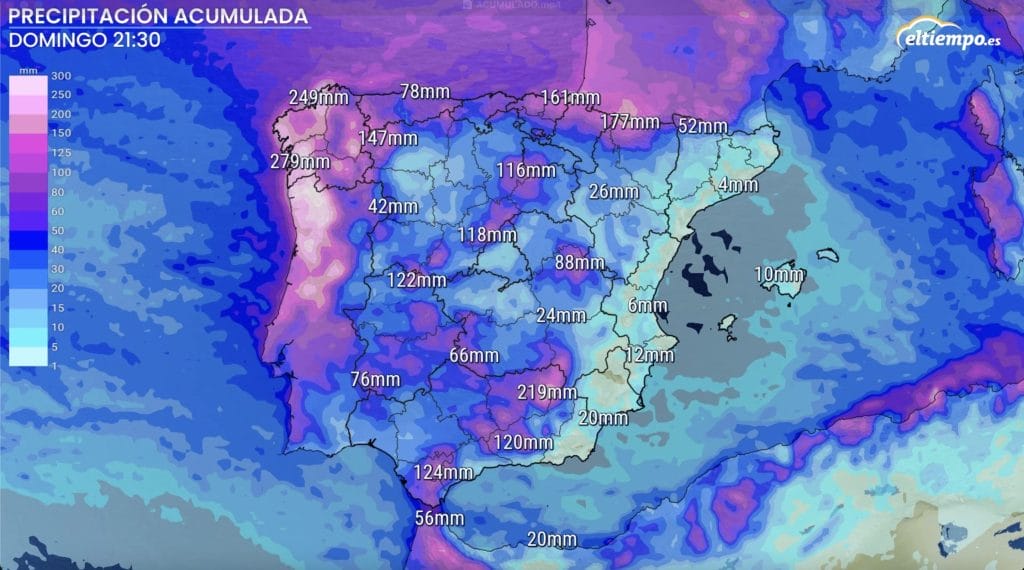 Las acumulaciones más importantes de precipitación a lo largo de la semana se van a registrar entre Galicia, las comunidades del Cantábrico, los Pirineos y, puntualmente, algunas comarcas del centro y sur peninsular.