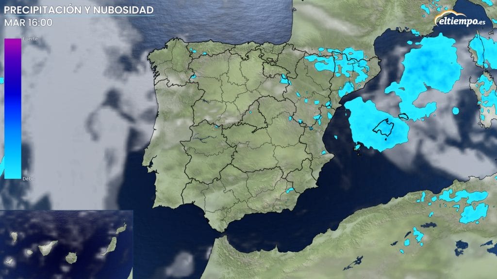 A partir del martes se espera que las lluvias vayan a menos. Mapa: Eltiempo.es