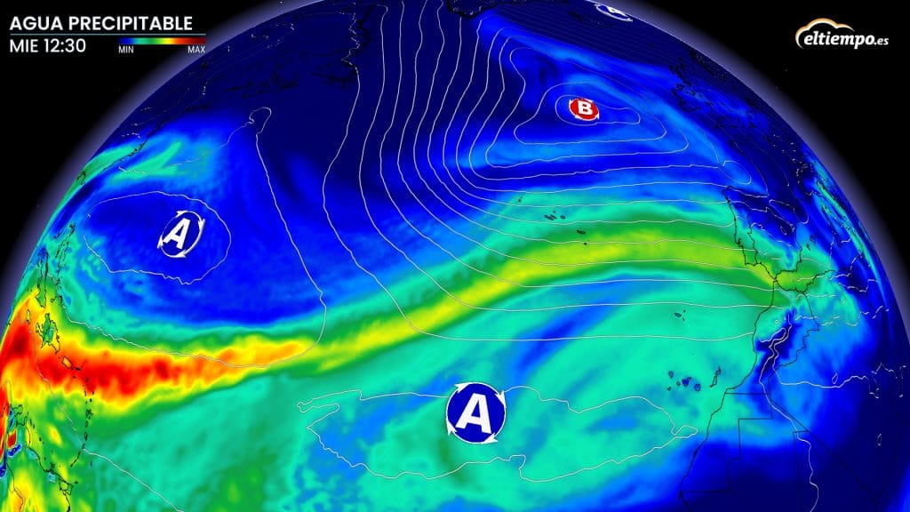 Entre la noche del martes y el miércoles, un río atmosférico llegará complicando bastante la situación y favoreciendo la presencia de lluvias intensas entre el miércoles y el jueves. Lloverá sobre mojado, lo que aumenta el riesgo de desbordamientos de ríos e inundaciones.