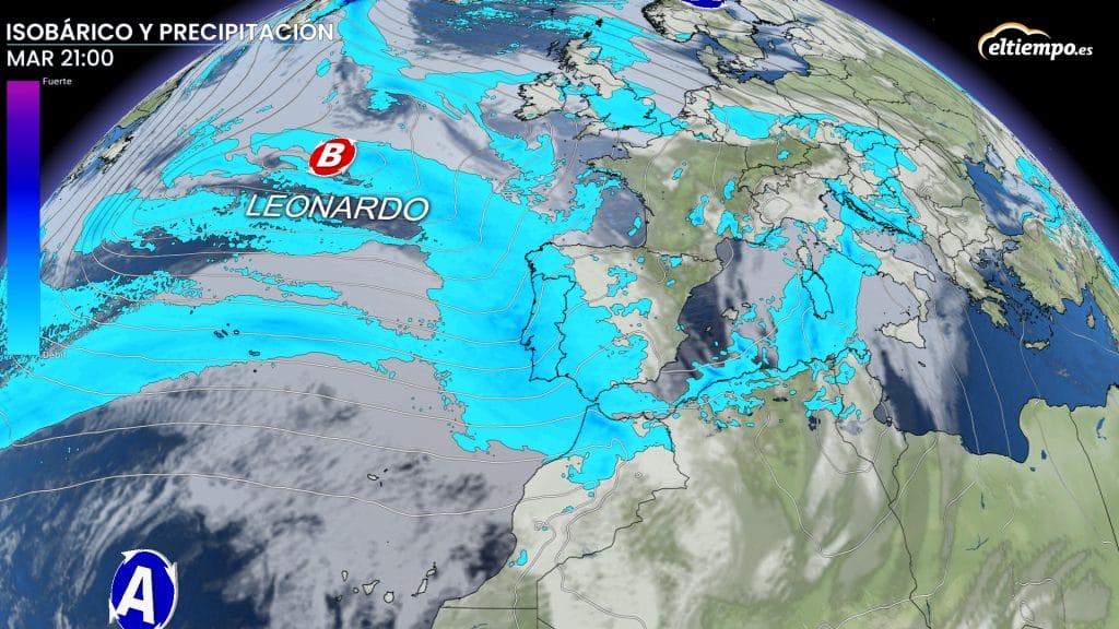 La borrasca Leonardo se acerca a la vez que un río de humedad