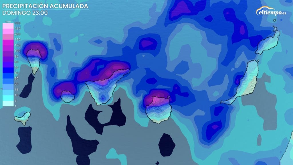 Las lluvias serán especialmente intensas en regiones del norte de las islas, sobre todo en Tenerife y Gran Canaria. En esta última isla las precipitaciones podrán venir acompañadas de fuertes tormentas a partir de mediodía. En el norte de Lanzarote también podrán tenerse tormentas durante la tarde.