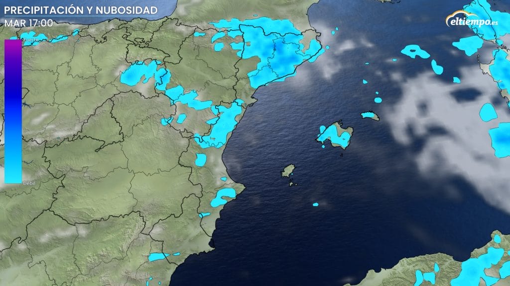 Durante la madrugada de este martes, las precipitaciones han continuado en el este de Cataluña, Comunidad Valenciana y en las próximas horas llegarán a Baleares.