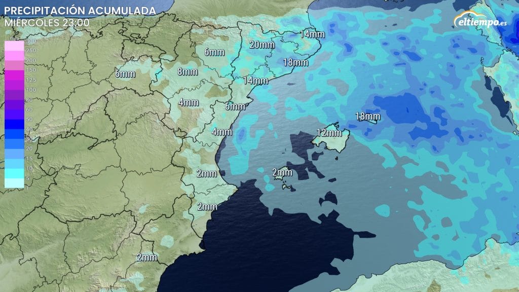 Los acumulados pueden ser importantes de nuevo en las provincias de Valencia y Castellón pero las más significativas se esperan en las costas de Cataluña y en Baleares.