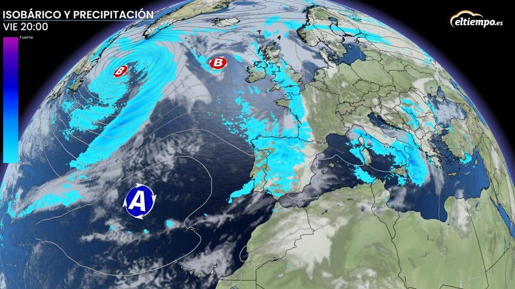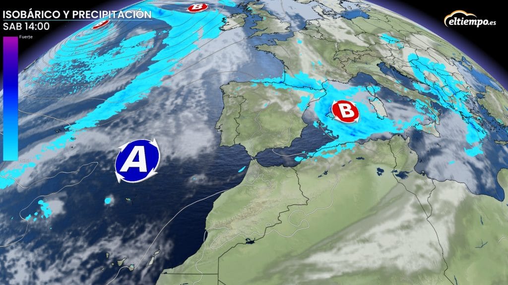Las lluvias pueden ser intensas en la cara norte de Pirineos, este y norte de Cataluña y sobre todo en Baleares, donde se formará la borrasca.