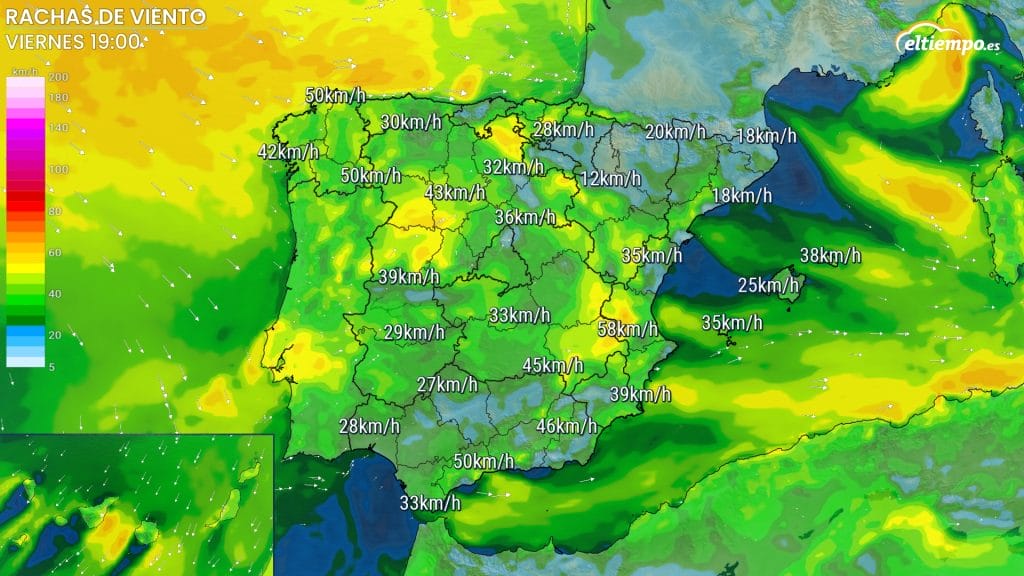 El viento del sur-suroeste también irá ganando intensidad al paso del frente, y este viernes será más destacado en la zona centro.