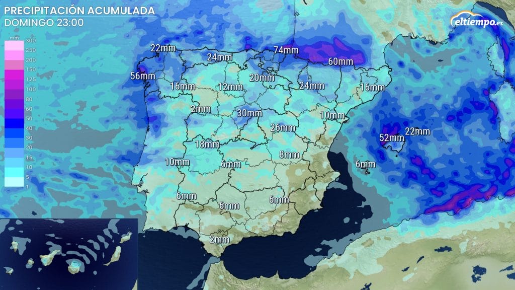 El domingo la situación mejorará notablemente, aunque un nuevo frente, mucho menos activo, dejará lluvias de nuevo en Galicia. En el resto del país será un día más soleado pero más frío.