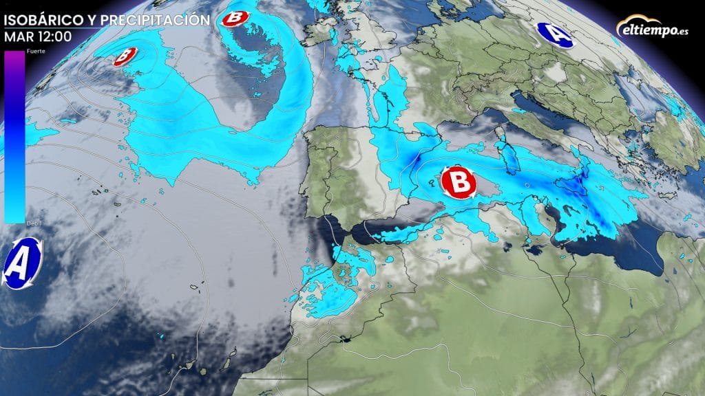 Una borrasca mediterránea marcará el tiempo durante varios días con lluvias persistentes, episodios torrenciales y nevadas en amplias zonas del este peninsular.