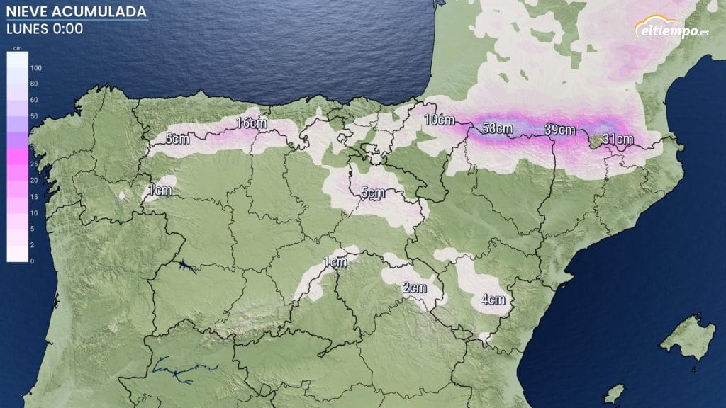 Este cambio en las condiciones meteorológicas viene provocado por la llegada de una masa de aire muy fría que entrará por el norte peninsular, trayendo un desplome térmico notable y nevadas en cotas medias e incluso bajas.