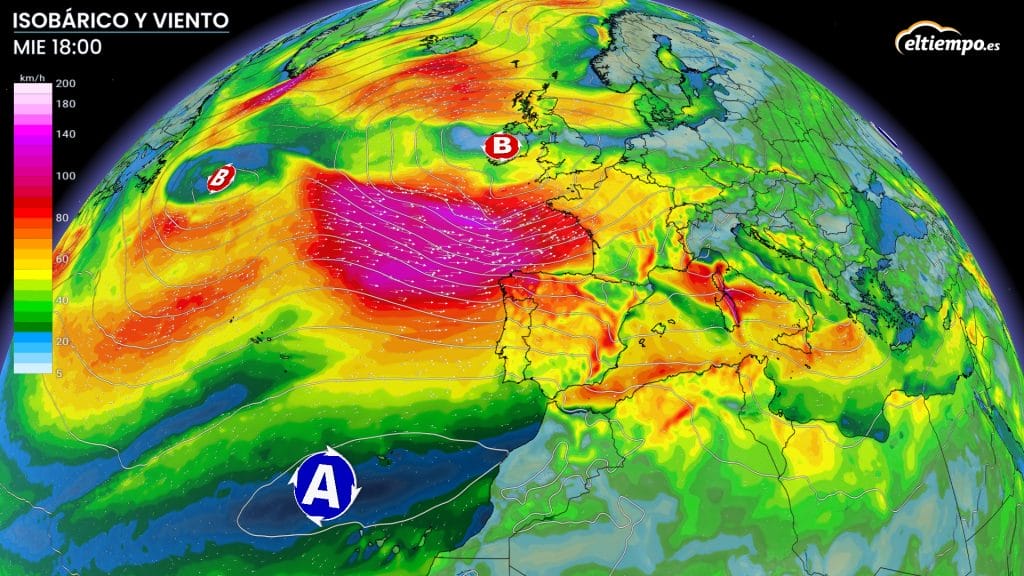 Sin embargo, no solo se esperan precipitaciones intensas, también fuertes rachas de viento. La configuración atmosférica favorecerá la entrada de viento muy fuerte desde el oeste del país. Se espera que el viento supere los 90 km/h en diferentes localidades, lo que ha activado avisos de nivel naranja.